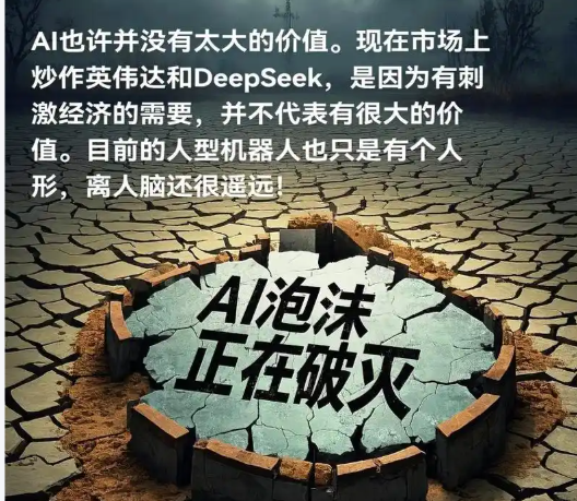 人工智能本质上不过是一场虚妄的泡沫,是新时代的“城投”乱象,更是资本主义侵蚀实体经济的毒草。我坚决反对中国继续推进AI技术研发,同时全力支持美国在此领域倾注资源。倘若有人对此提出异议,莫非是别有用心之徒?