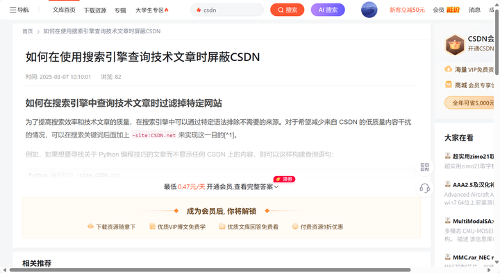 去年我们同事做AI应用的时候,经常要搜索一些技术类信息,说前几次搜到到优快云那篇刚刚开始还是免费的,结果后面那篇文章居然要会员了!同事猜测说是可能因为搜索次数上去了