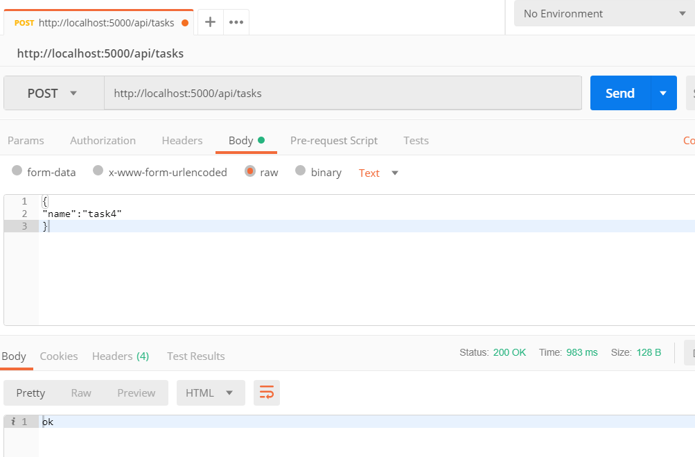 该接口的请求地址为/api/tasks,请求方法为POST,如果新增成功则返回文本"ok"。