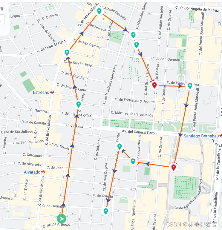 本次运用的场景是多个包裹最短路径算法。假如一个快递员手上有12个包裹,如何规划一个最短送货的线路呢