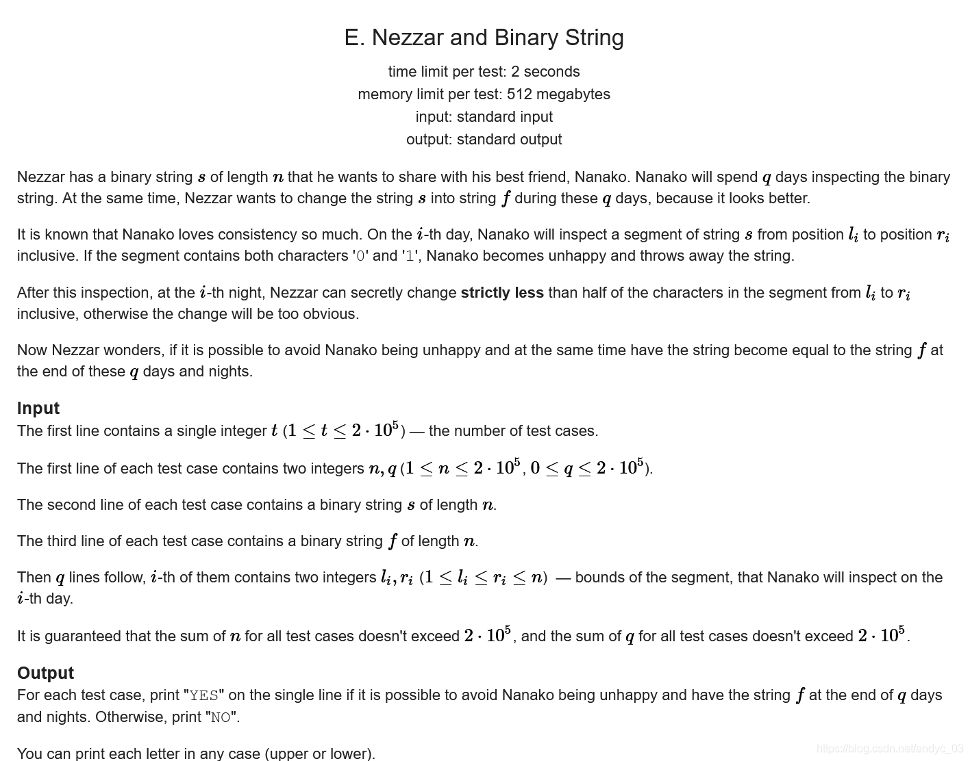 特别地,区间查询发现如果 01 数量相同则输出 NO,如果最终状态不符合初始状态也是 NO。