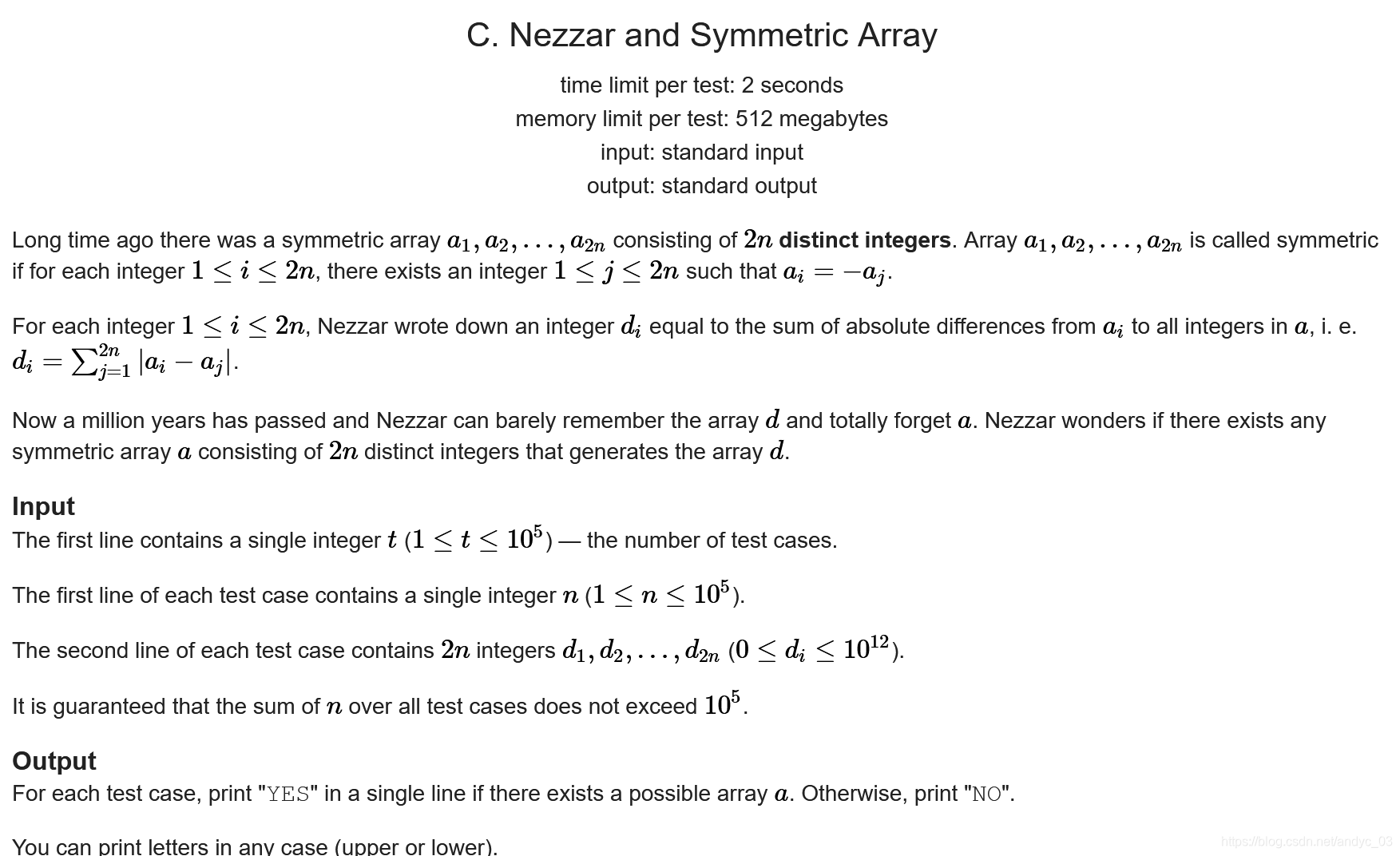 这道题目只需要手动模拟几组就可以很轻松的得到公式了,要注意先不妨设一下相对大小来避免绝对值的讨论,然后呢,就是通过一对一对从大到小的计算,注意要验证算出来的数的确是递增的才可以!