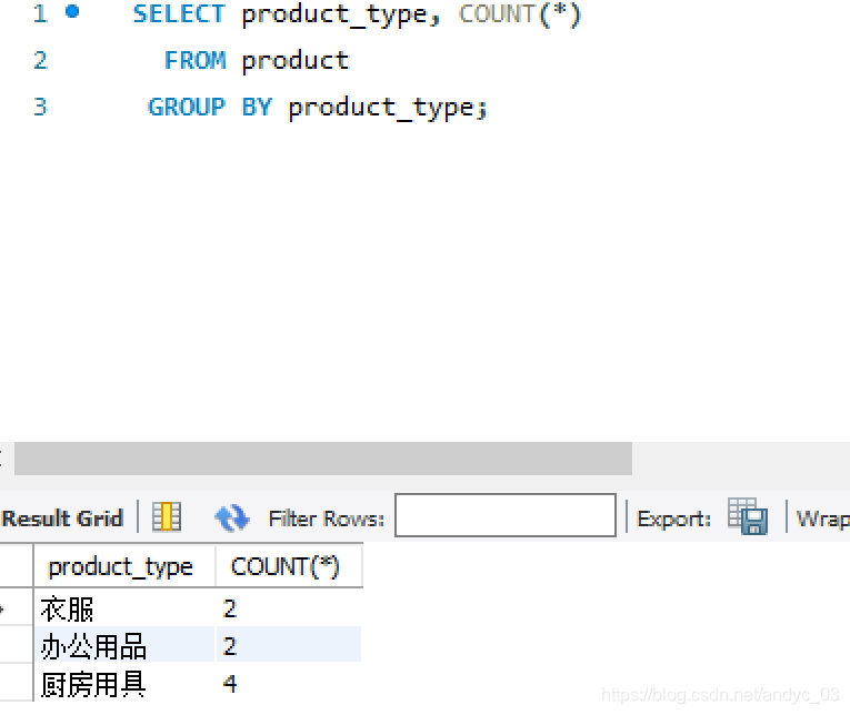 1.product_name 不可以进⾏ SUM 聚合 2.WHERE 语句应该书写在 GROUP BY 语句之前 3.GROUP BY 字段( product_type )与 SELECT 字段不同( product_id )