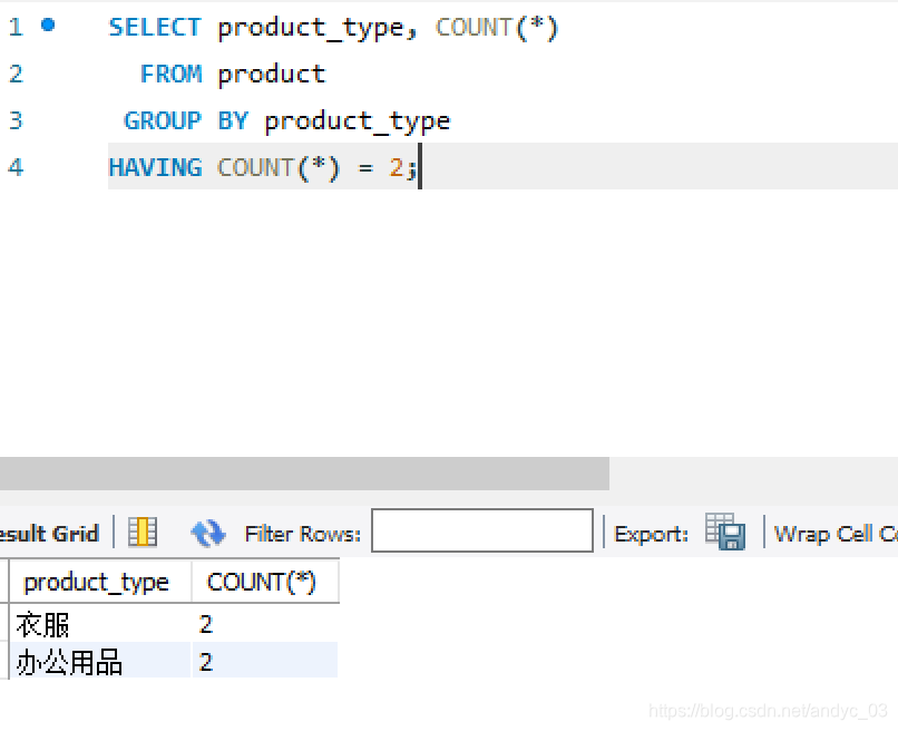 HAVING子句用于对分组进行过滤,可以使用数字、聚合函数和GROUP BY中指定的列名(聚合键)。