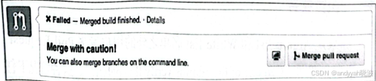 如果有某项测试没有通过,则会显示为图 8.27 的状态。此时可以点击 Details 链接查看详细内容,找出未能通过测试的问题所在。注意: 在这个状态下,千万不能合并 Pull Request。