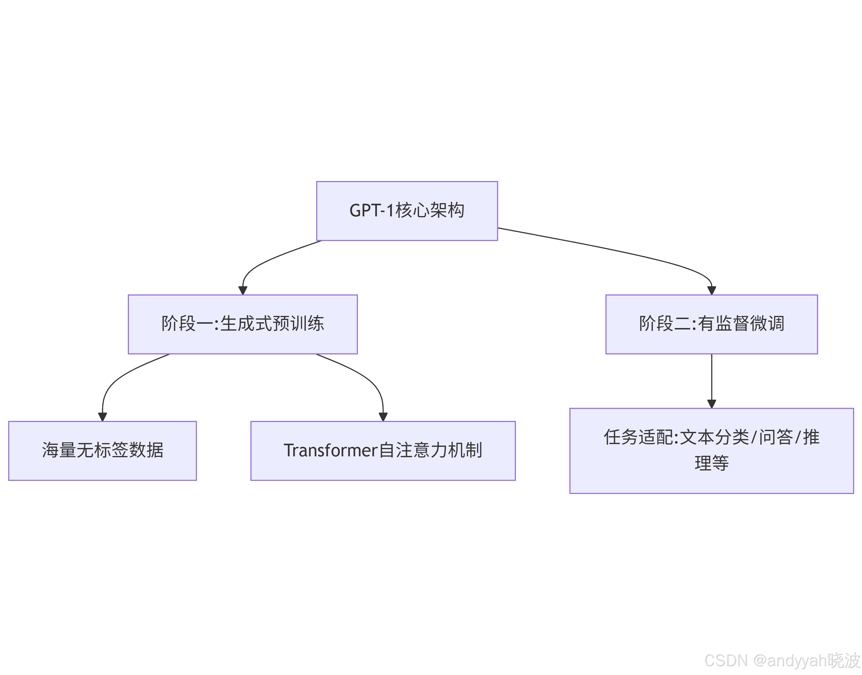 2018年GPT-1首次提出"预训练+微调"范式,通过:- 无监督预训练:基于40GB互联网文本构建通用语言理解能力