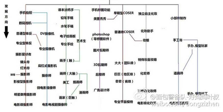 请看下图,这是一张微博上流传滴现实职业进阶图,or 技能树。