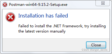 出现这个是因为你的是.NET Framework 版本太低了,postman需要.NET Framework4.5以上的版本才可以使用