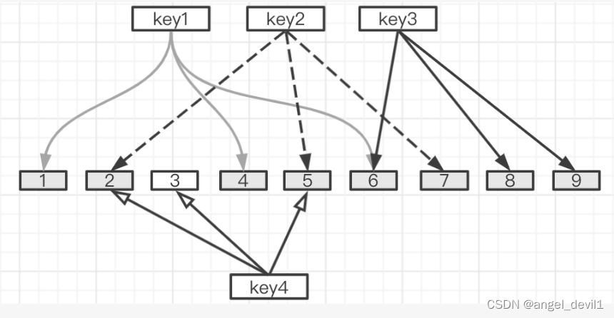 最后,我们会发现这个 bit 数组里只有位置 3 还是空着的。如果此时来了一个新的 key4 通过三个Hash算法求出的哈希值为 1、2、3,我们则可以断定 key4 一定不存在