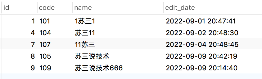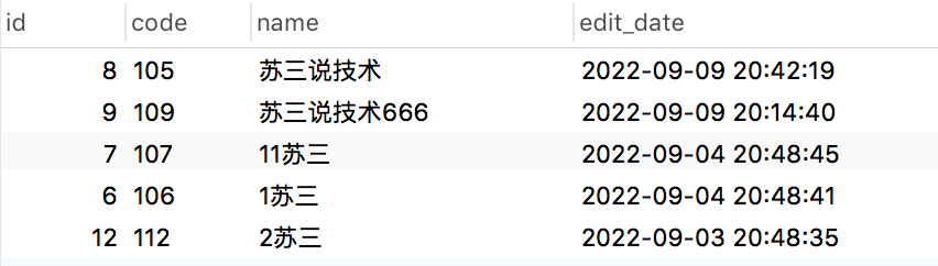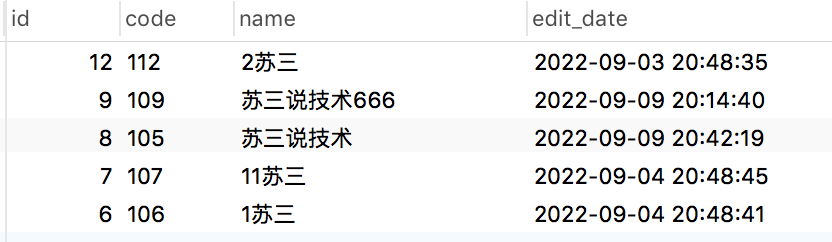 我们所期待的:苏三,终于排在第一个了。同时由于该sql做了分页的,即使name字段在查询时丢失了索引,执行效率也不会太低。
