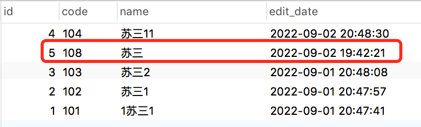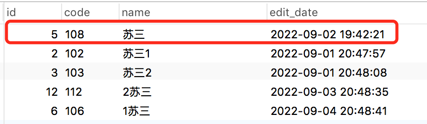 如果查出了一条数据,则把它放在返回结果集合中的第一位置。接下来,使用like '%苏三'进行模糊查询的时候,再加上条件 name <> '苏三'。将查出的结果,从第二个位置往后放。