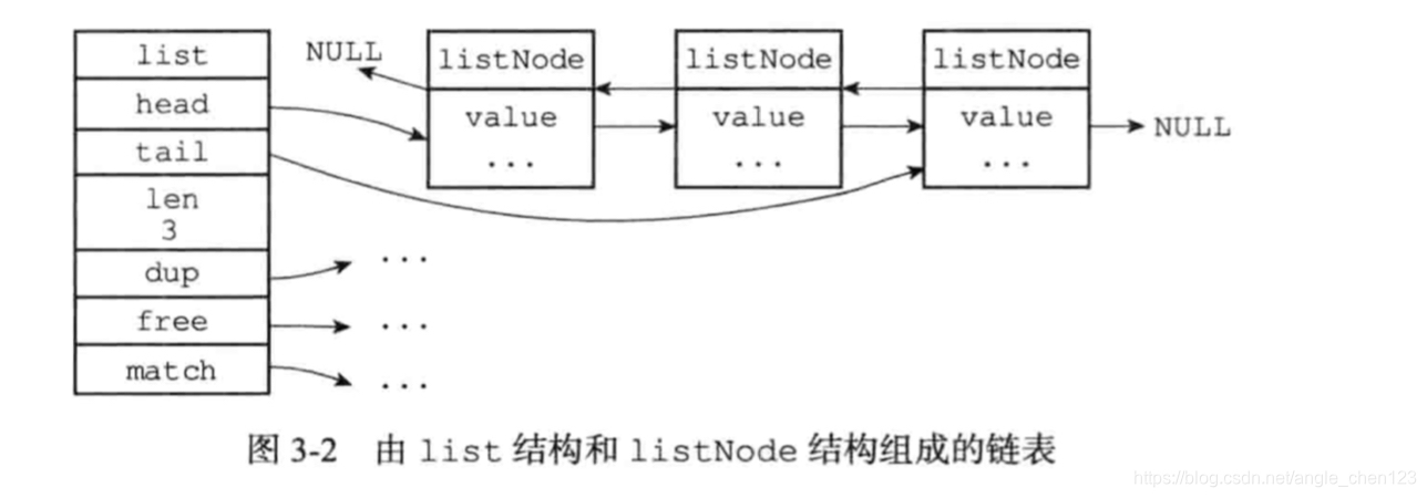 list结构为链表提供了表头指针head、表尾指针tail,以及链表长度计数器len,而dup、free和match成员则是用于实现多态链表所需的类型特定函数;