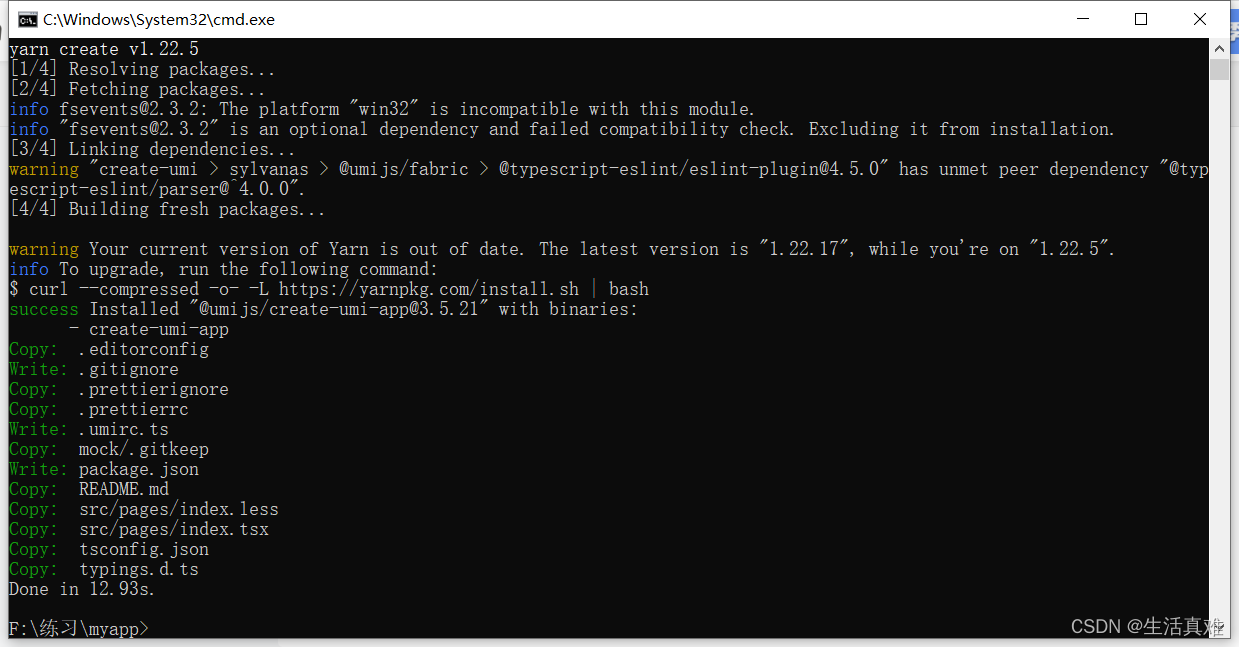 在需要构建目录的地方(如F:\练习\myapp)执行:yarn create @umijs/umi-app