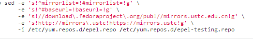epel安装好之后,默认使用的是国外的源(Fedora 官网提供),速度比较慢,如果想要速度快些,可以做下更改,将源更改成国内的源,如中科大(ustc)的EPEL源,执行如下命令即可,详细配置,请见http://mirrors.ustc.edu.cn/help/epel.html