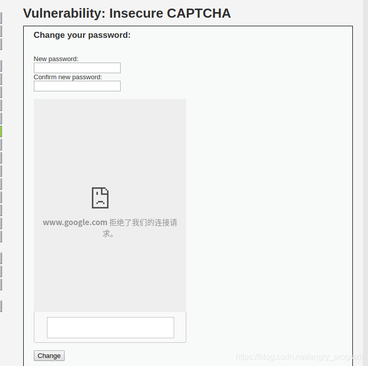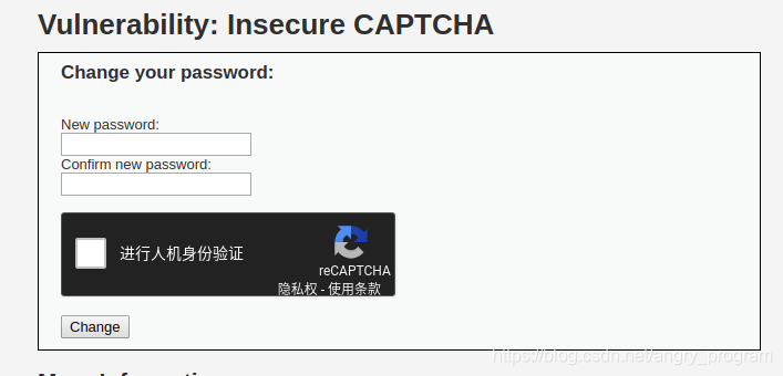Insecure CAPTCHA,意思是不安全的验证码,CAPTCHA是Completely Automated Public Turing Test to Tell Computers and Humans Apart (全自动区分计算机和人类的图灵测试)的简称。但个人觉得,这一模块的内容叫做不安全的验证流程更妥当些,因为这块主要是验证流程出现了逻辑漏洞, 并不是验证码API本身的漏洞。