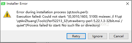 Error duringinstallation process(qt.tools.perl):Execution failed:Could not start:”{0,3010,1603,5100} msiexec /iF:\qt\qtAnZhuang\Tools\Perl52213_32\strawbery-perl-5.22.1.3-32bit.msi/quiet”(Process failed to start: No such file or directory).
