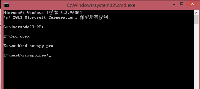 cd 进入文件夹 cd..回到上一级 进入某个盘符直接输入E: 大小写没关系