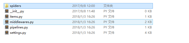 dir-spiders:存放所有spider的文件,里面的spider文件自己新建。