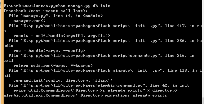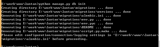 进入manage.py目录 执行python manage.py db init