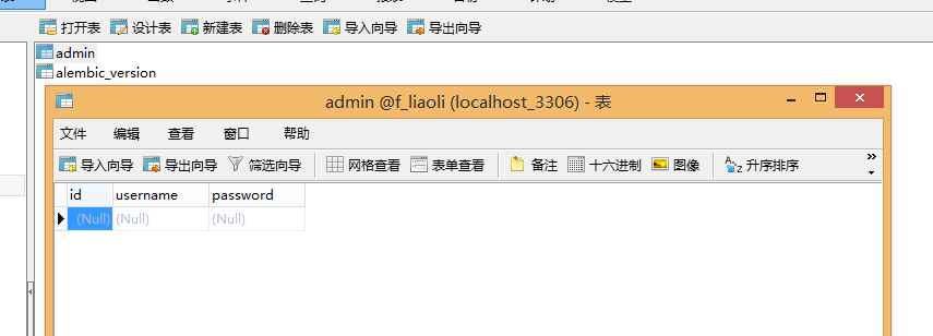 到此admin表就创建完毕了, 虽然简单做起来还是遇到了一些小麻烦,多学习多学习。