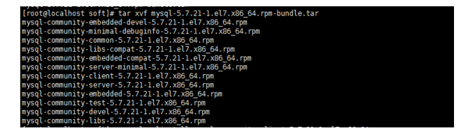 $ tar xvf mysql-5.7.21-1.el7.x86_64.rpm-bundle.tar