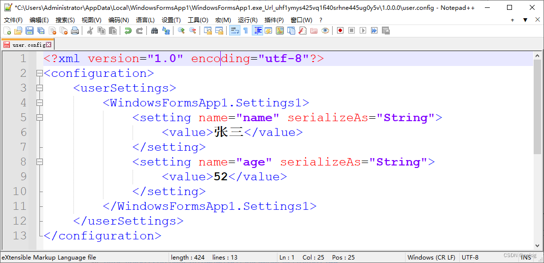 上位机程序通常都会需要保存一些用户的配置信息。比如名称,年龄等