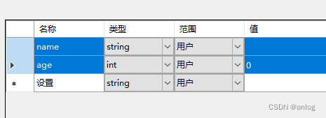 新插入的设置文件Settings1会自动打开。添加对应项目 数据类型分别为string和int,参见下图所示。