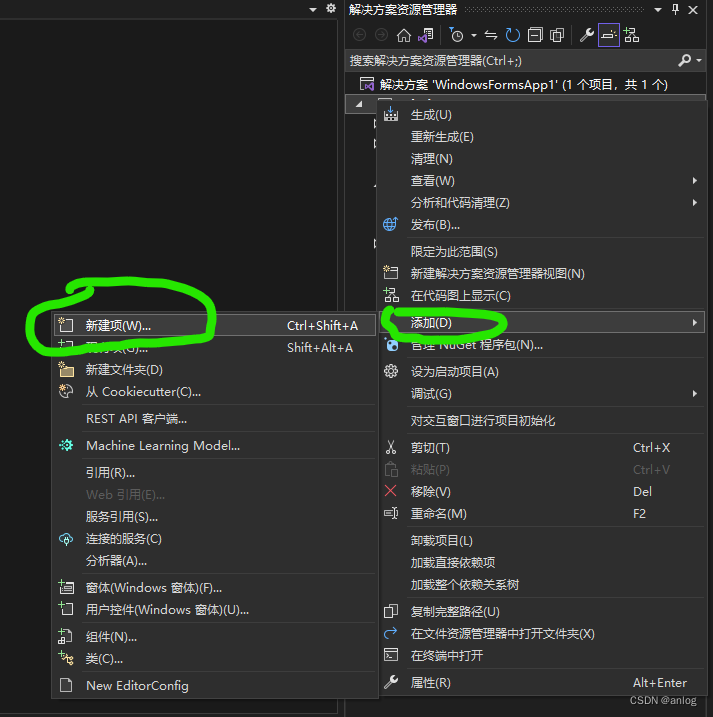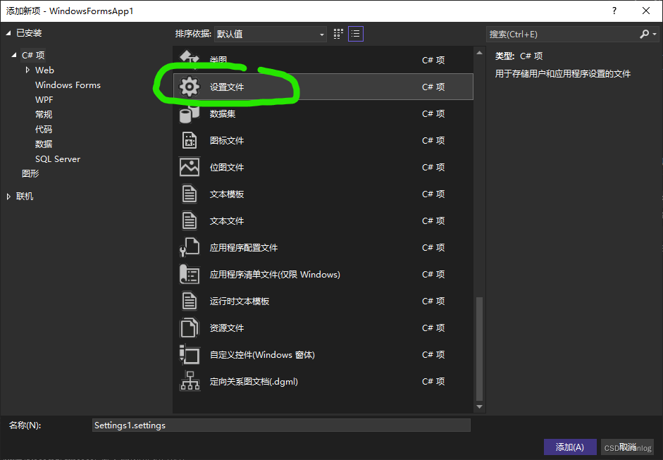 设置文件的使用非常方便,在项目名称上右击,选择“添加/新建项”。