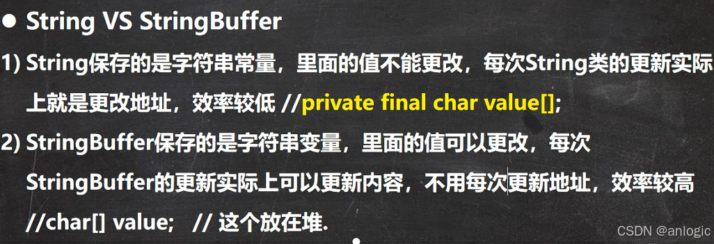 // 不用每次都更换地址(即不是每次创建新对象), 所以效率高于 String
