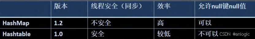 - hashtable的键和值都不能为null,否则会抛出NullPointerException