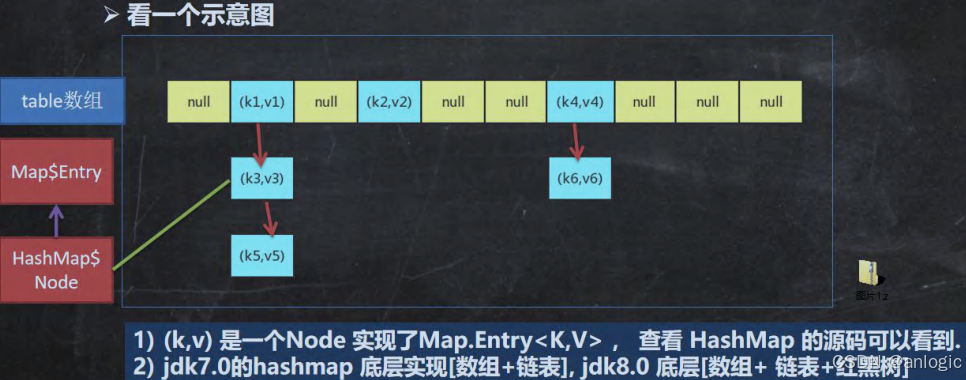- HashMap 是以key-val 对的方式来存储数据(HashMap$Node类型)[案例Entry]