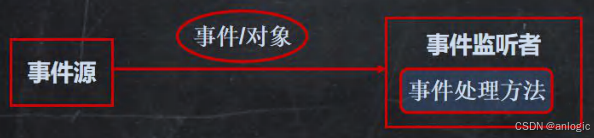 - 事件源:事件源是一个产生事件的对象,比如按钮,窗口等