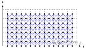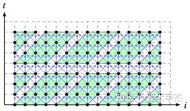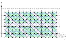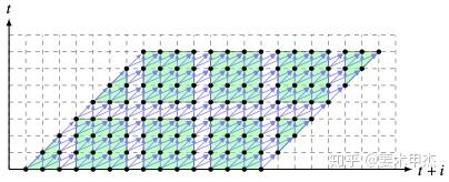沿i轴方向上的所有循环迭代之间不存在依赖,也就是处在同一水平面上的循环迭代是可以并行执行的。但是现在没有考虑到如何使用t轴和i轴方向上的数据局部性。当N和T较大时,这种计算方式Cache的命中率就会下降。一个很自然的优化目标是如何让编译器能够自动计算出能够充分利用沿多个轴上的数据局部性,这种任务是通过循环分块来完成的。所以,Pluto算法的一个非常重要的目标是通过变换让上述程序能够实现循环分块。