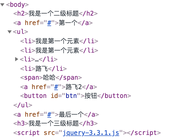 $('<a href="#">路飞2</a>').appendTo($('ul'));