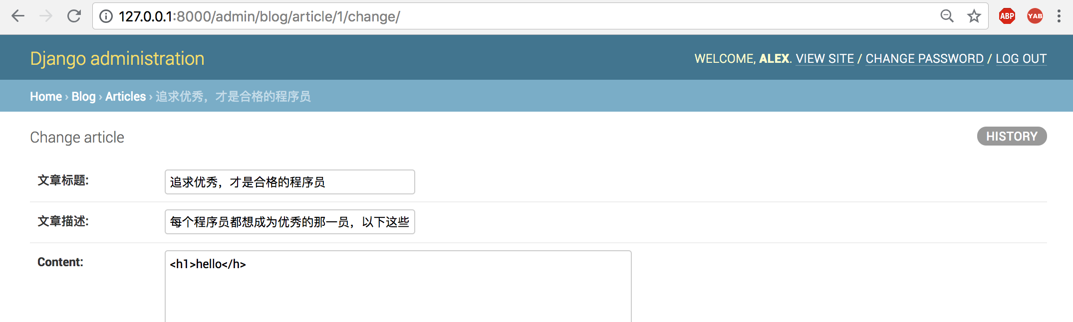修改article_detail.html,load用来载入一个过滤器或者tag, 在这里引入my_tags: