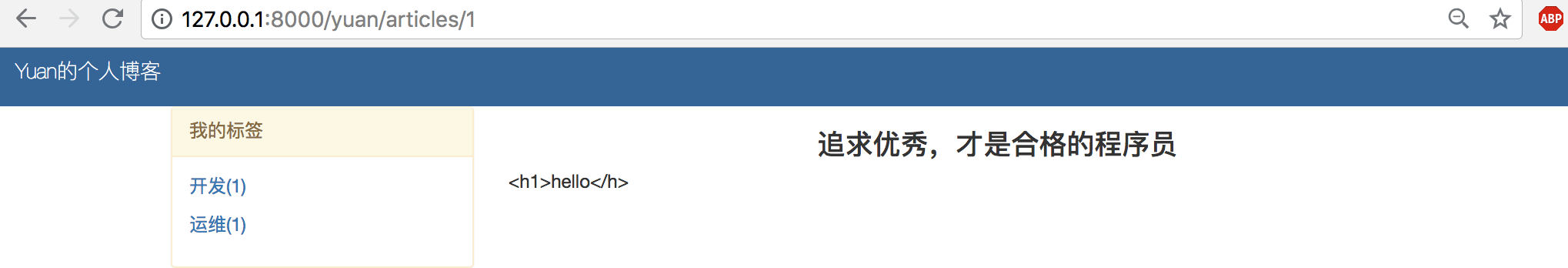 文章详情页的head部分和左侧区域应该和个人站点保持一致。因此需要用到继承extend。