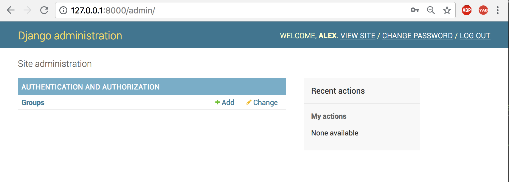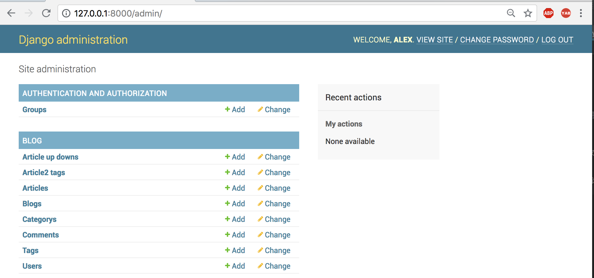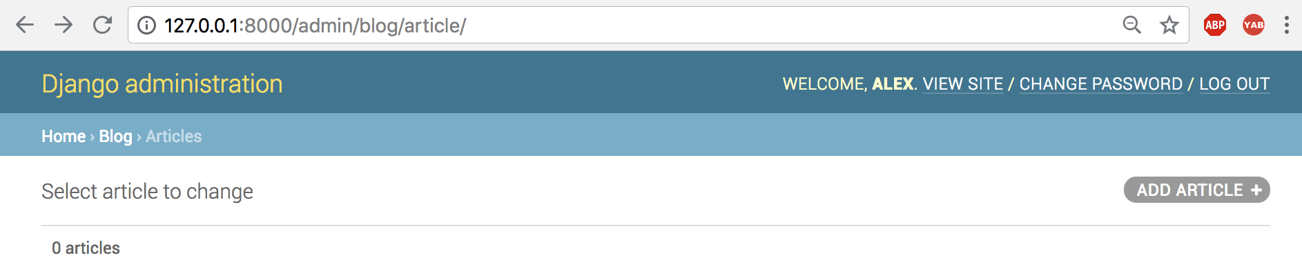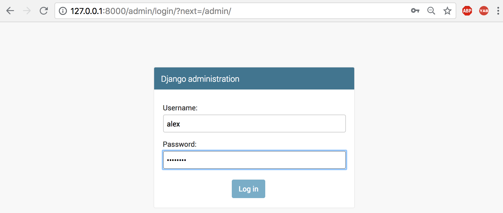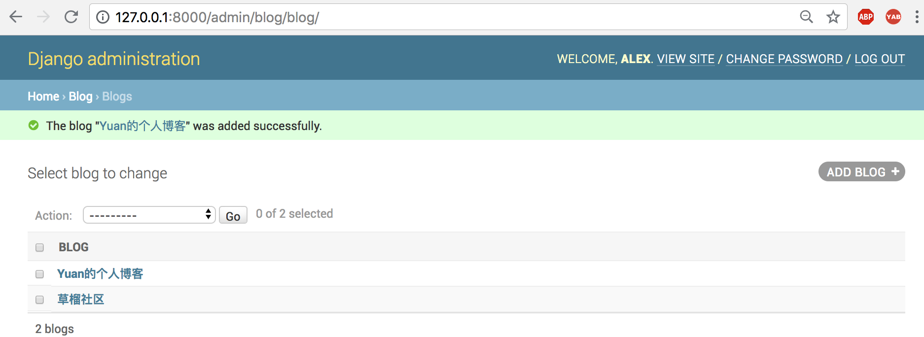 创建好新的超级用户的账号密码:alex/alex1234,访问admin页面: