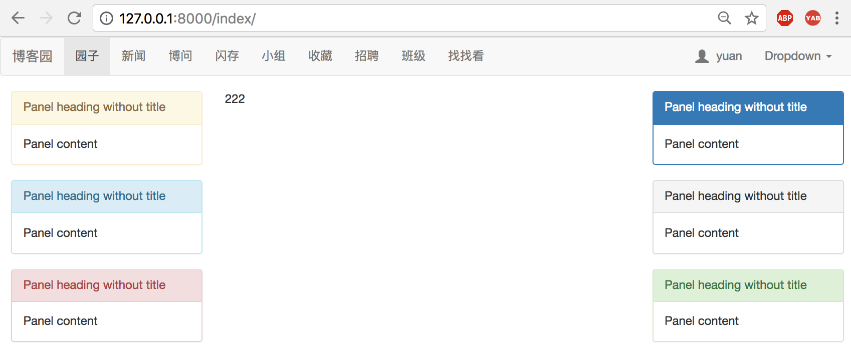 左右两个部分先不做,暂时使用bootstap的面板进行填充: