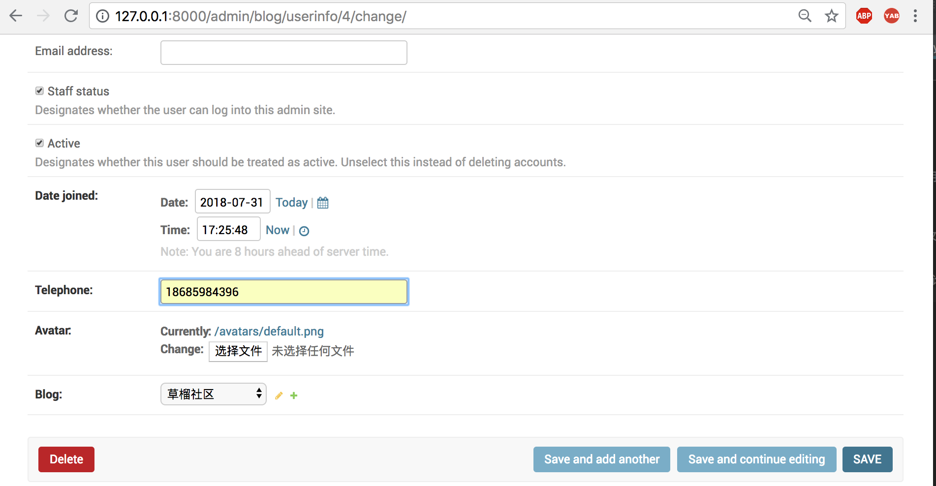 在cnblog/blog/admin.py里引入models,并以如下方式注册表: