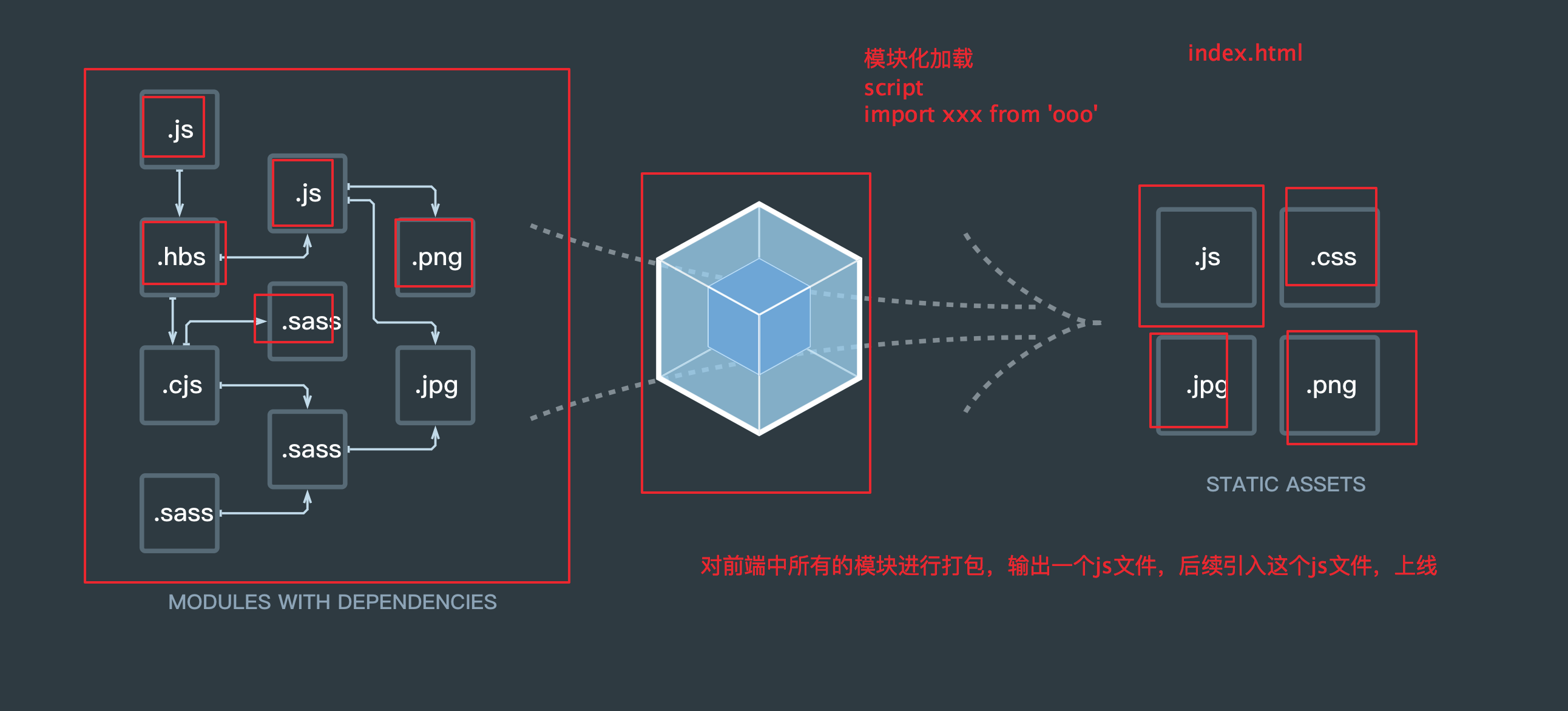 这些改进确实大大提高了开发效率,但是利用它们开发的文件往往需要进行额外的处理才能让浏览器识别,手动处理非常繁琐,WebPack类的工具的出现就是为了解决这样的需求。