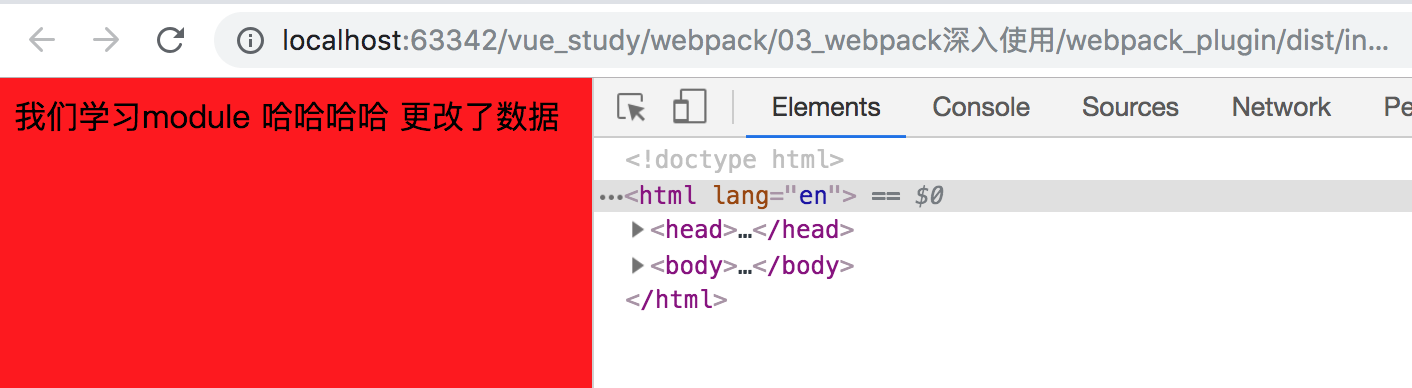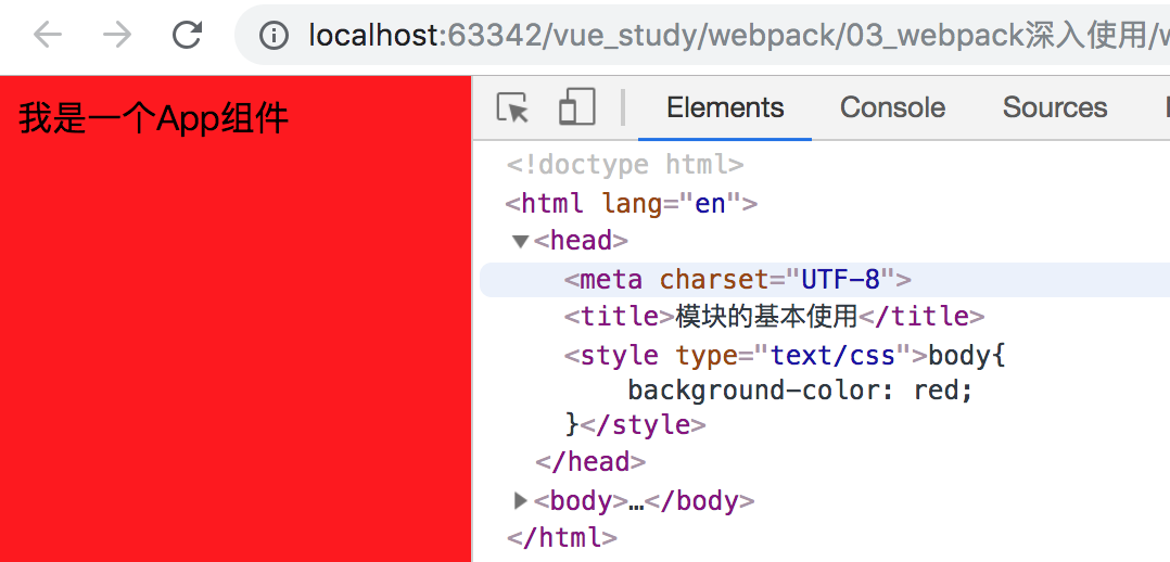 <!DOCTYPE html> <html lang="en"> <head> <meta charset="UTF-8"> <title>模块的基本使用</title> </head> <body> <div id="app"></div> </body> </html>