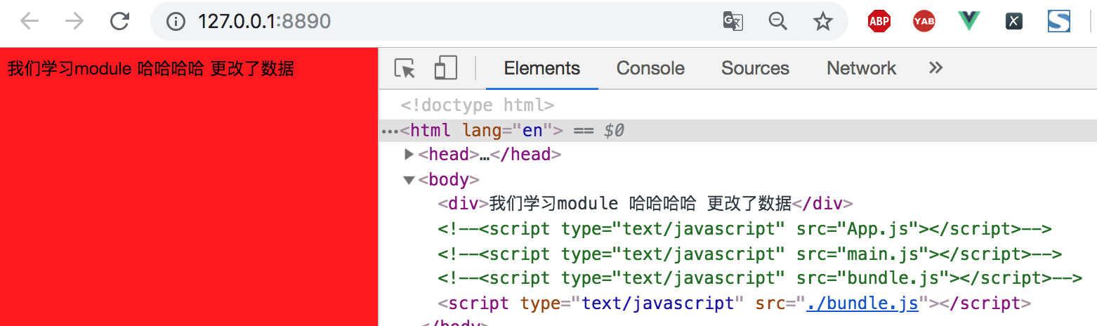 <!DOCTYPE html> <html lang="en"> <head> <meta charset="UTF-8"> <title>模块的基本使用</title> </head> <body> <div id="app"></div> <script type="text/javascript" src="./bundle.js"></script></body> </html>