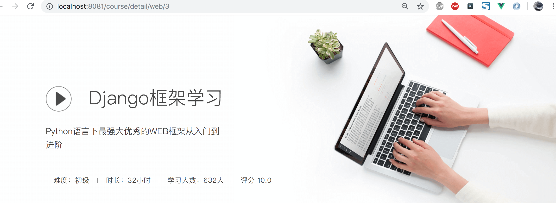 <div class="web-course-banner"> <div class="container"> <div class="title"> <img src="../../../static/images/play.png" height="67" width="67" alt=""> <h1 class="course-title">{{coursedetailtop.name}}</h1> </div> <span class="course-text">{{coursedetailtop.course_solgan}}</span> <div class="course-list"> <ul> <li class="detail-item"> 难度:{{coursedetailtop.level}} </li> <li class="sep"></li> <li class = detail-item>时长:{{coursedetailtop.hours}}小时</li> <li class="sep"></li> <li class = detail-item>学习人数:{{ coursedetailtop.learnnumber }}人</li> <li class="sep"></li> <li class = detail-item>评分 {{ coursedetailtop.course_review }}li> </ul> </div> </div> </div>