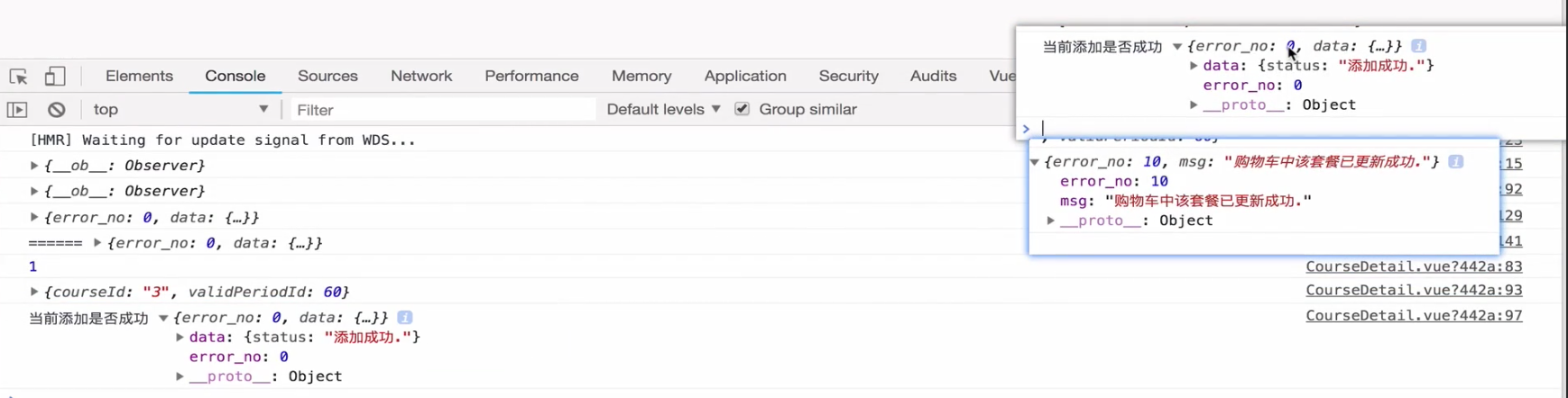 购物车没有当前课程时,点击添加后,信息为error_no:0,显示 “添加成功”。