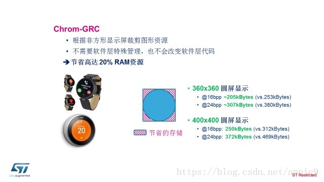 Chrom-GRC功能:可优化圆形屏显示效果,在STM32L4+系列MCU中增添了该功能。