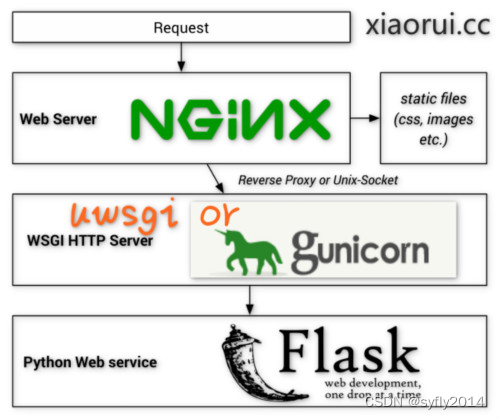 Web服务器网关接口(Python Web Server Gateway Interfeace,缩写WSGI)是为python定义的Web服务器和Web应用程序或框架之间的一种简单而通用的接口。
