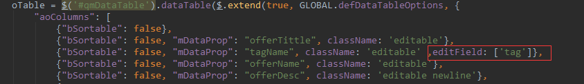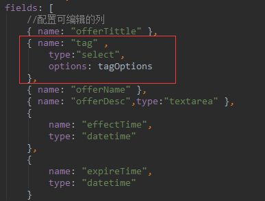 比如tag这个字段,对应服务端bean的tag,但是在页面显示时需要为String类型的tagName,那么在行编辑时可以用以下的方式处理。