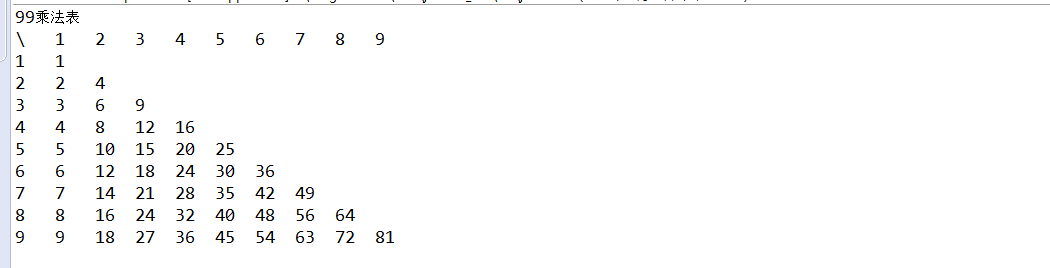 // 打印99乘法表