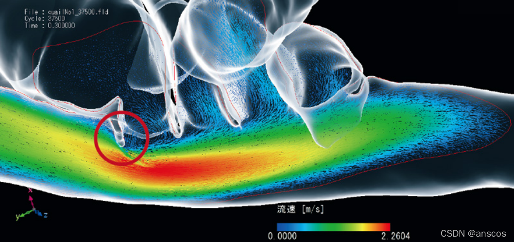图1通过scflow&SCRYU / Tetra模拟从瓣膜血管中的血流。